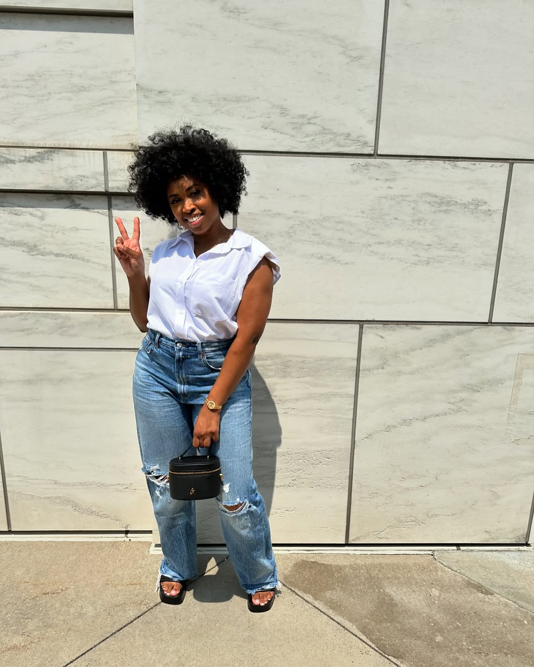 Vegan leather Vanity Bag with sleek gold hardware. Petite compartment, side pocket, removable strap for chic versatility.