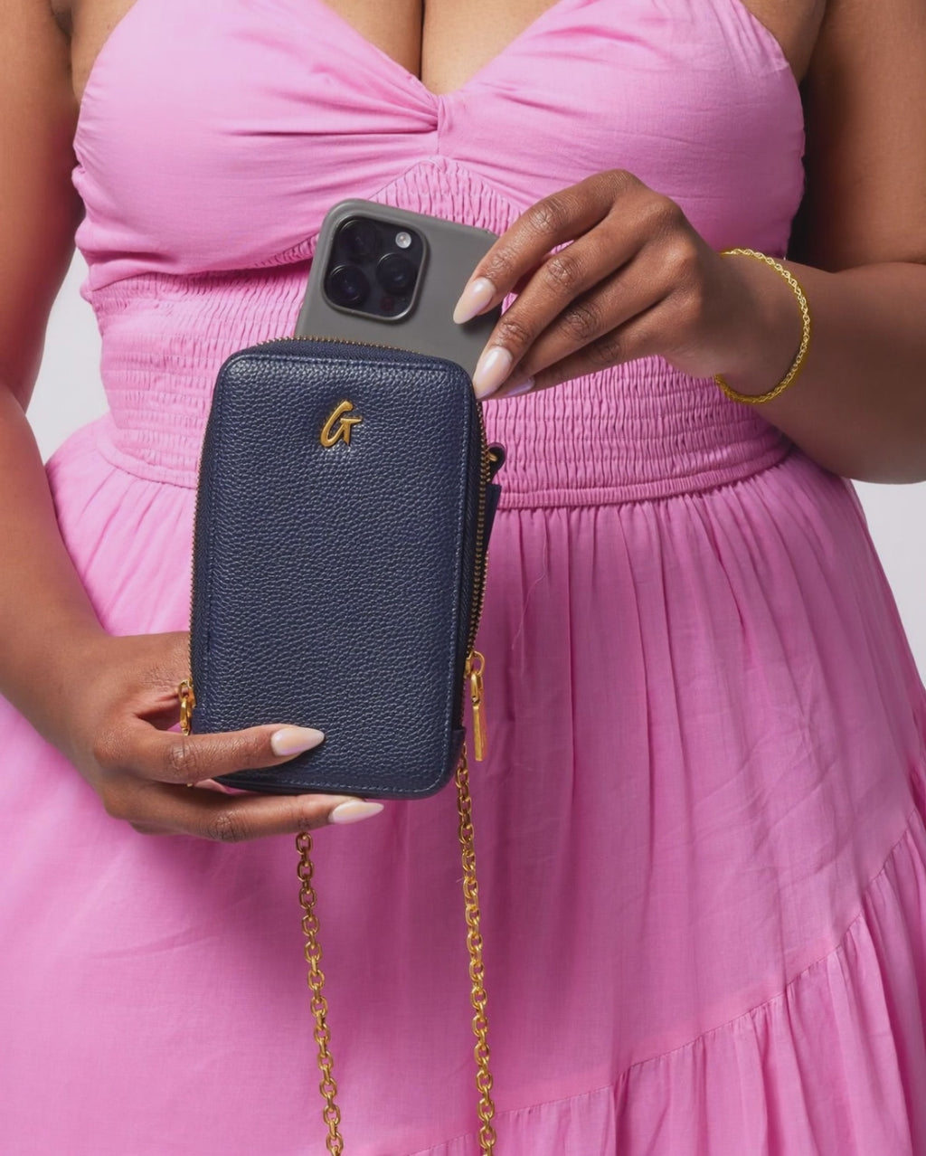 Meet your new favorite sidekick: the Pebble Phone Crossbody. Designed for effortless convenience, this stylish crossbody lets you carry your phone securely with hands-free ease. Featuring an adjustable strap and zip closure, it’s the perfect accessory for any occasion. The signature G emblem in gold-tone adds a chic touch, while interior card slots mean you can skip the wallet when you’re heading to brunch or running errands.
