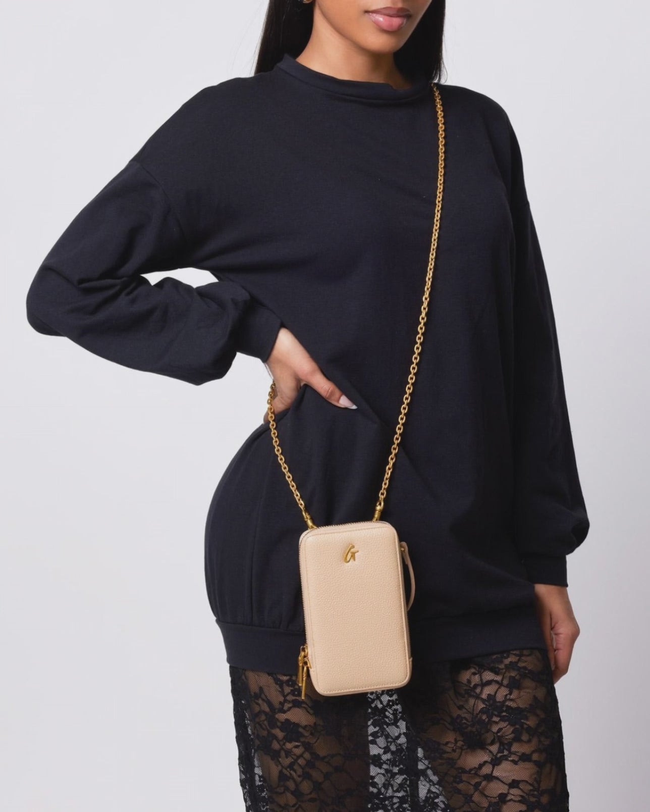Meet your new favorite sidekick: the Pebble Phone Crossbody. Designed for effortless convenience, this stylish crossbody lets you carry your phone securely with hands-free ease. Featuring an adjustable strap and zip closure, it’s the perfect accessory for any occasion. The signature G emblem in gold-tone adds a chic touch, while interior card slots mean you can skip the wallet when you’re heading to brunch or running errands.