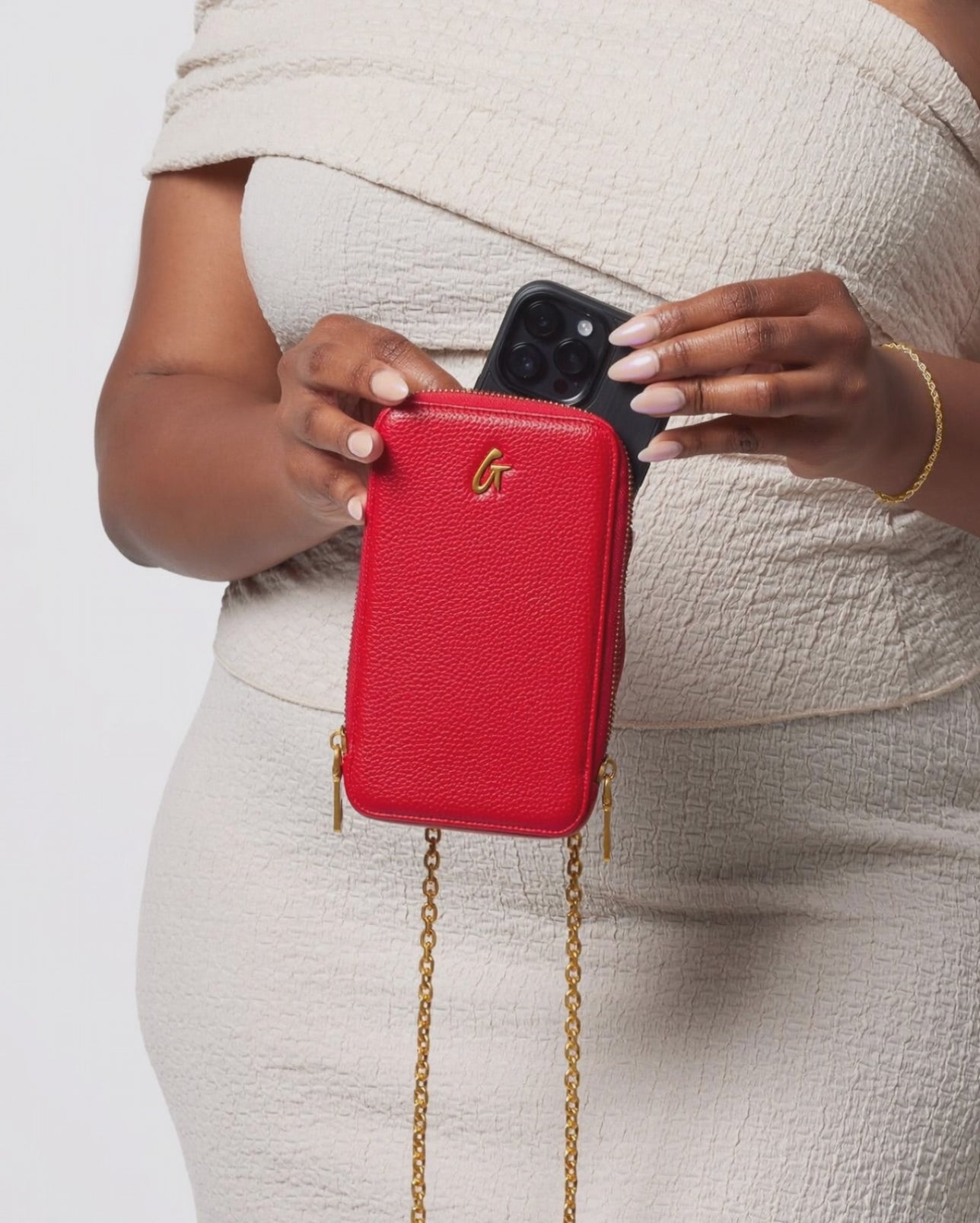 Meet your new favorite sidekick: the Pebble Phone Crossbody. Designed for effortless convenience, this stylish crossbody lets you carry your phone securely with hands-free ease. Featuring an adjustable strap and zip closure, it’s the perfect accessory for any occasion. The signature G emblem in gold-tone adds a chic touch, while interior card slots mean you can skip the wallet when you’re heading to brunch or running errands.