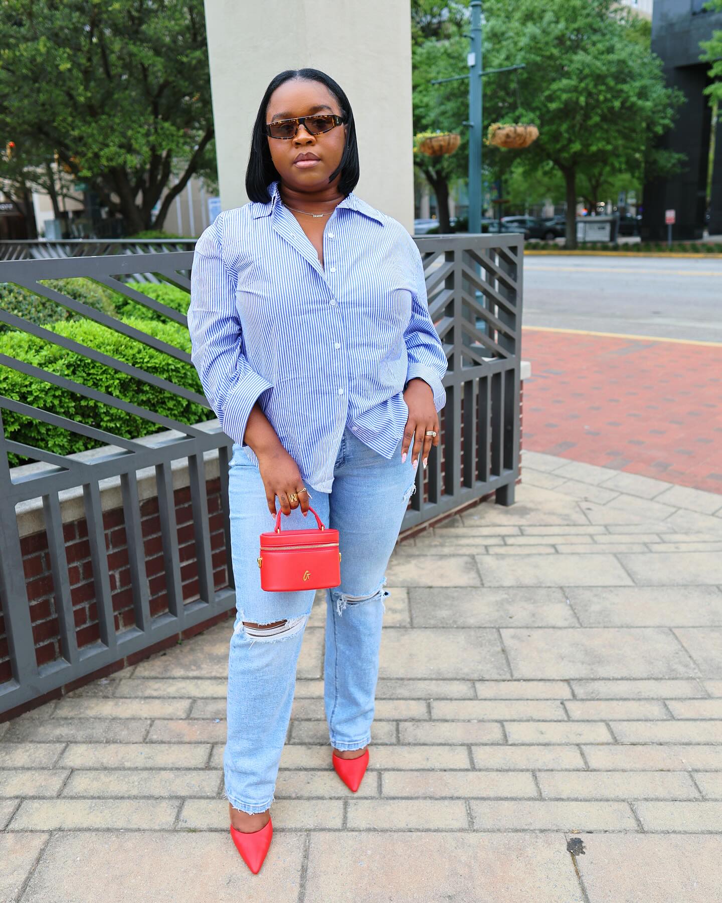 Vegan leather Vanity Bag with sleek gold hardware. Petite compartment for wallet & keys. Removable strap for versatile wear.