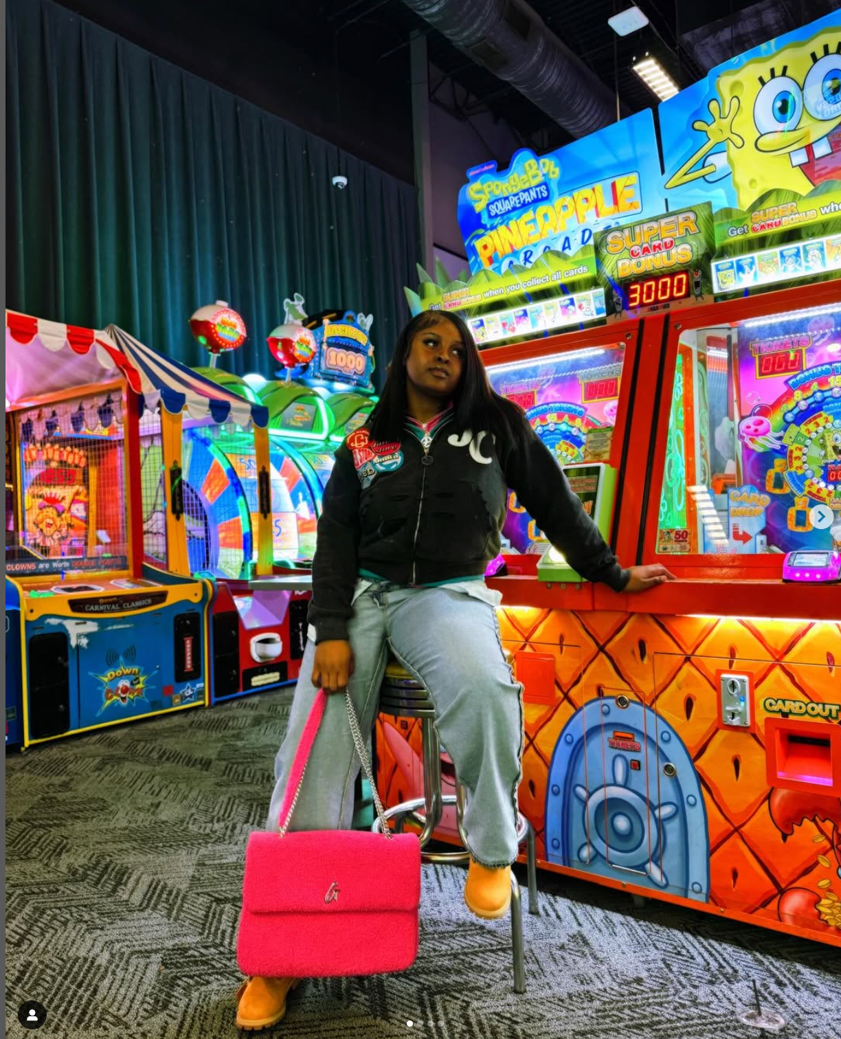 This spacious, teddy bear-inspired bag is the final word on cuddly chic. Perfect to use as a carry-on or on-site business meetings, a generous center slip interior divides into two compartments with a zip pocket and second slit for essentials. Sliding chain straps turn the accessory from shoulder bag to crossbody in seconds, along with a luggage sleeve for easy travel.